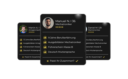 Du erhältst direkt Vorstellungsgespräche in Deinen Kalender durch unsere telefonische Qualifizierung nach Deinen Anforderungen. Einfach die besten Fachkräfte auswählen und einstellen - ohne Zeitaufwand.